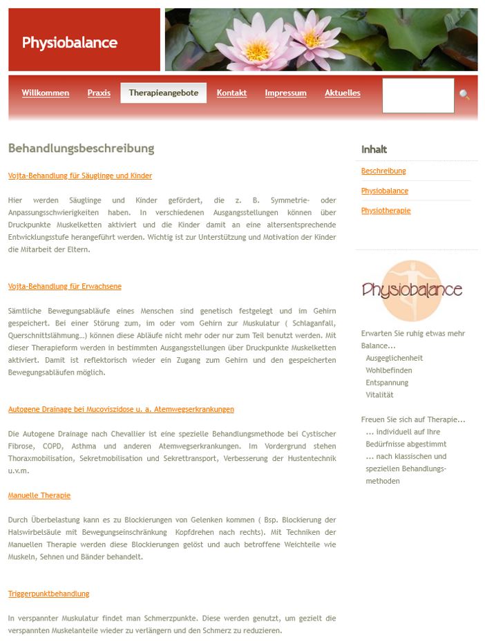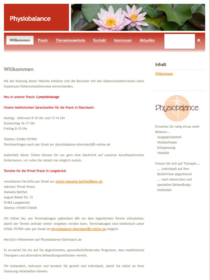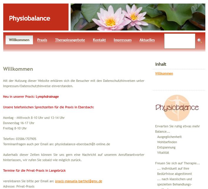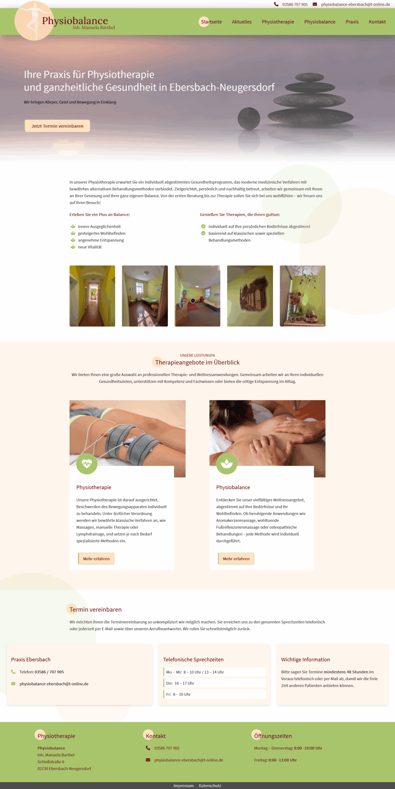Unsere Internetagentur SEO-Lausitz hat die Website von Physiobalance aus Ebersbach-Neugersdorf grundlegend überarbeitet und in ein zeitgemäßes, leistungsstarkes und nutzerorientiertes Online-Erlebnis verwandelt. Dabei stand im Fokus, die Corporate Identity der Praxis optimal zu transportieren und gleichzeitig eine moderne, frische Bildsprache einzubinden.