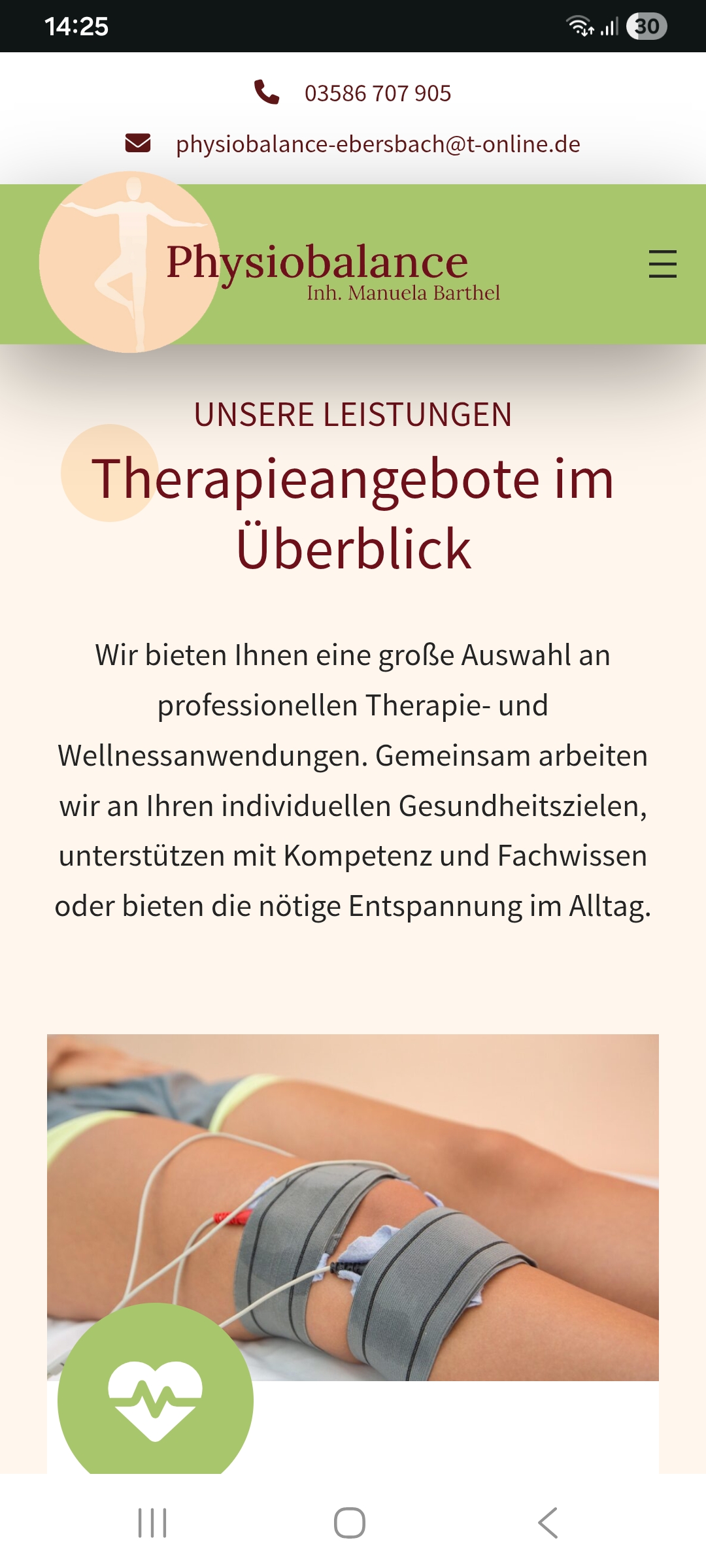 Durch das Redesign von SEO-Lausitz präsentiert sich PhysioBalance Ebersbach nun deutlich professioneller, moderner und übersichtlicher. Die Website ist wesentlich nutzerfreundlicher gestaltet und entspricht den aktuellen Standards moderner Webtechnologien. Dadurch stärkt die Praxis ihre Markenwirkung, während Patienten schneller und einfacher alle relevanten Informationen finden.
